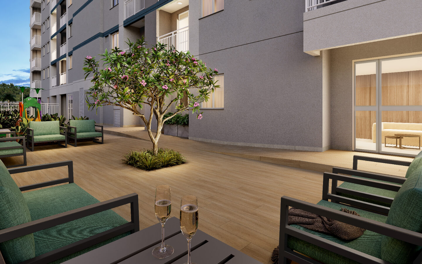 Academia, Brinquedoteca, Churrasqueira, Coworking, Easy Market, Futmesa, Lavanderia, Oficina, Pet Place, Piscinas, Playground, Salão de Festas e Solário